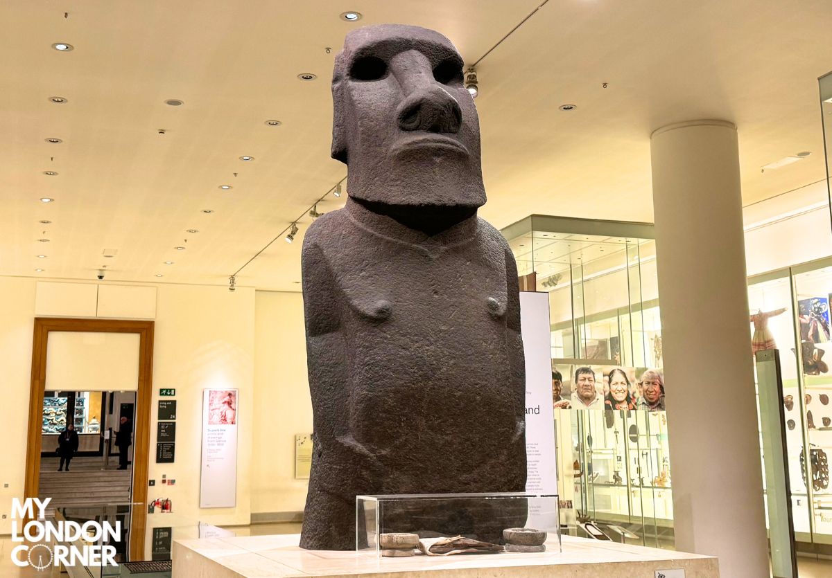 La statua dell’isola di Pasqua accoglie i visitatori nel settore dedicato all’Asia e all’Oceania. La grossa statua nera si chiama Hoa Hakananai’a che ironicamente significa “l’amico rubato”. La statua si trovava originariamente nell’isola di Rapa Nui, detta anche isola di Pasqua. Si suppone che questo esemplare risalga più o meno al 1200. Originariamente queste statue erano colorate e spesso riportavano inserti di corallo nelle cavità degli occhi. La statua arrivò in Inghilterra nel 1868 e fu donata alla regina Vittoria, che poi la consegnò al British Museum.