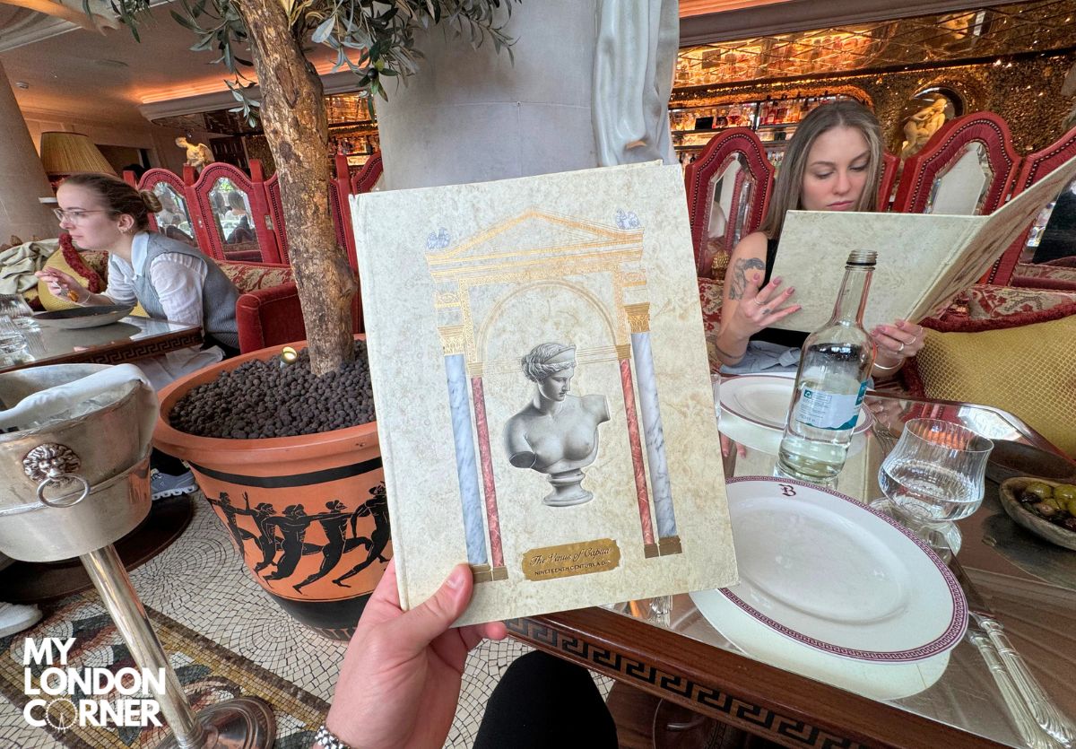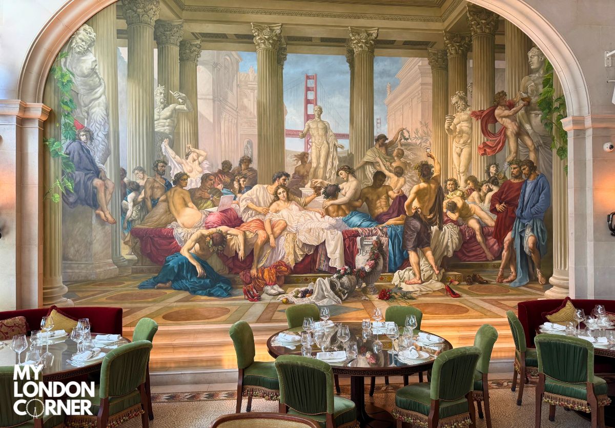 Appena varcata la soglia, sembra di entrare in un sontuoso tempio dedicato agli dei dell’ospitalità. Le decorazioni ispirate alla mitologia greca e romana, firmate dal celebre designer Martin Brudnizki, rendono ogni angolo perfetto per una foto. Statue imponenti, affreschi, candelabri scenografici e luci soffuse creano un’atmosfera elegante e immersiva.