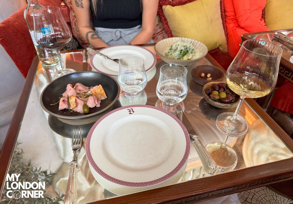 Il punto forte di Bacchanalia è l’estetica: ogni dettaglio è curato per stupire, e l’ambiente da solo giustifica la visita. Il cibo è buono, ma non tra i migliori che abbiamo assaggiato a Londra. Tuttavia, con il menu fisso a £39 e i 3 vini a £20, l’esperienza rimane conveniente per Mayfair.